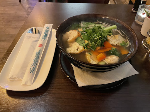 3 Sterne erhält die besagte Pho mit Bio-Tofu. Die ist jetzt nicht schlecht… jedoch werden hier in der Suppe - Suppenwürfel/ Fix-Produkte verwendet. Eine Pho die in der Regel würzig und schmackhaft ist und ein wohliges Gefühl hinterlässt, werdet ihr hier allerdings nicht finden! Pho-Kenner wissen was gemeint ist. Es ist auch nicht wirklich möglich, die Brühe zu trinken, wenn man erst einmal eine richtige Pho genossen hat! Sondern man wird sich hier lediglich mit dem anderen Inhalt zufrieden geben. Nochmal - es schmeckt jetzt nicht schlecht, aber leider machen genügend Restaurants die eine Pho anbieten genau diesen Fehler und verwenden wenn die schlecht schmeckenden Asia Suppenwürfel und vermitteln daher den Gästen einen falschen Geschmack! Über weitere Gerichte kann ich nichts sagen, die Gäste sahen aber zufrieden aus. Ich würde dennoch wieder einkehren um weitere Gerichte zu probieren! Ist trotz der Pho einladend...