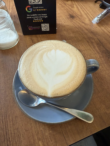 Read moreEin interessantes Café. Sonntag 10.30 Von den vielleicht 40 Plätzen innen und außen nur 4 besetzt. Junge Frau hinter der Theke zwar freundlich, liebt aber anscheinend Erziehungsspiele. Ich habe einen Kaffee bestellt, mich hingesetzt und die Karte studiert. Sie bringt den Kaffee (Laden ist Selbstbedienung) und als ich das Essen bestellen will, sagt sie, dass ich zu Theke kommen muss. Ich also die drei Meter zur Theke. Dort angekommen sage ich noch einmal, was ich haben möchte, worauf sie an eine andere Stelle an der Theke zeigte und sagte, ich dürfe nur von hier bestellen. Ok, wenn sie darauf steht. Meinetwegen. Ich habe noch einen zweiten Kaffee bestellt und bezahlt. Mittlerweile waren nur noch zwei Leute im Raum und niemand stand an. Plötzlich höre ich sie mehrfach rufen, dass ich den Kaffee abholen soll. Ich dachte erst, sie macht ein Witz, weil sie die drei Meter ohne Probleme hätte gehen können und den ersten ja auch an den Tisch gebracht hat. Jetzt wusste ich, sie steht darauf. Ich also Kaffee abgeholt und mir im Stillen meinen Teil gedacht. Kafkaesk oder halt so einer bestimmten Fetisch Szene zuordenbar. Beides ist nicht mein Cup of tea. Immerhin war sie bildhübsch, was die Groteske ein bisschen gemildert hat. Der Kaffee schmeckte hervorragend. Das Essen hat auch geschmeckt. Allerdings muss man Preis-Leistungsverhältnis nachjustieren. Man sieht dem Brot an, dass die Besitzer zwar ambitioniert sind, aber scheinbar nicht vom Fach. Viele Bahnen mit der Dekosoße, die aber geschmacklich nicht wirklich was hinzufügt. Farblich schön auch ein paar Blüten auf dem Brot: Aber auch hier ist die Absicht spürbarer, als der Effekt schmeckbar. Ich denke, es ist auf jeden Fall gut, dass die Besitzer andere Akzente setzen wollen und auch einige sehr lecker klingende Frühstücke anbieten. Ich würde jederzeit wieder einen Kaffee bestellen. Aber to go, weil das Theater der jungen Dame einfach nur genervt hat. Ihre Vorlieben soll sie privat ausagieren. In einem fast komplett leeren Café ist das unpassend. Kaffee fünf Sterne. Essen: 3+ und...