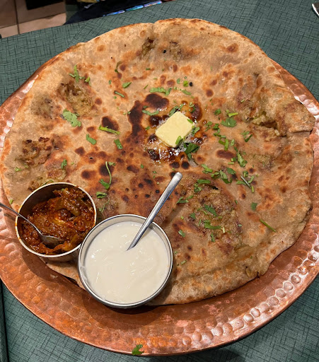 When the parathas finally arrived, they were a sight to behold. Served on traditional copper plates, every detail was perfected. Alongside the paratha came accompaniments that were individually the best in their categoryâcreamy yogurt, tangy achaar (pickle), and a variety of sabzis to sample.
