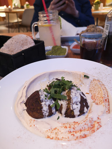 Read moreA Mediterranean-Oriental place to have a quick and healthy meal. I chose a hummus-nanoosh-plate with roasted beef (the beef was ok) and a babananoosh eggplant paste (very small portion). It's nice that they write the amount of the kCal next to every dish. Also the total taste of the whole dish was good. All freshly prepared. The service is really attentive and there is a nice music playing. Unfortunately last time when I wanted to try other dishes I just had to leave the place. In a completely empty place I chose a table which was for 4, and the waitress didn't want to serve me unless I go to a small table for 2. That was really rude to do so when I am the only customer there and coming alone I would not spend much time there but...