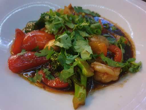 Ein soooo unscheinbarer Laden.. Und der Clou... Wenn man drin ist, stellt man fest, hier wird auch gekocht.. Es gibt im hinteren Teil ein paar überdachte Tische, an denen es sich traumhaft original thailändische Spezialitäten essen läßt. Die Hausherren kocht noch selbst, und das erstens sehr authentisch, mit einer großen Auswahl... Und.. VORZÜGLICH. Im übrigen ohne Glutamat. Es schmeckt wie auf dem Markt in Saigon. Auf Wunsch auch echt rrrichtig thai scharf, und das hat dann aber auch schmackkes. Alle Zutaten top frisch.. Hatte heute wunderbare Garnelen unit thai Basilikum, Koriander, Chili, Knoblauch, Zitronengras und Gemüse in einer Austernsoße. Ein Gedicht! Sehr sehr zu empfehlen! Bester Thai in Spandau und darüber hinaus! P. S. Wer will kann hier einen thailändischen Kochkurs belegen und im Anschluß alles, was er benötigt, im laden frisch kaufen. Nascha und ihre Kinder sind immer für einen da! Daaaaanke, dass...