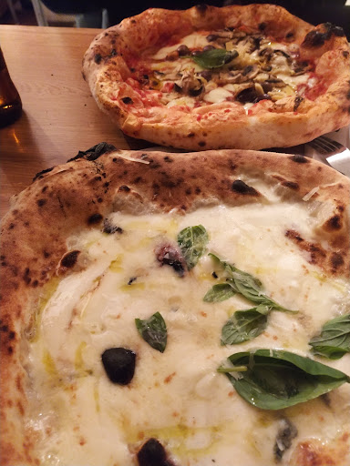This is a genuine Italian pizza experience. You can either purchase the ready-to-go cut pizza, or order a "round" full pizza that you can enjoy while sitting at your table. Please keep in mind that there is no table service, so you order inside and then sit wherever you want.