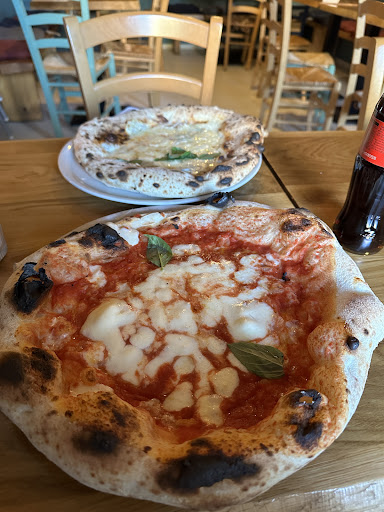 Orders are handled neatly with pagers. The place is ok, simple and clean, with tables inside plus many tables outside - weather allowing. They also share seats with the bar by the corner, so you can order food here and drinks there, sit and enjoy. The staff is kind and easily speak Italian, English and German. It's possible to pay with card from 15€ up. The pizzas are great: the dough is light and soft, the condiments are first class and there is a good choice of genuine Italian products (don't expect pineapple or other weird stuff). There also is a good selection of Sicilian desserts like 'codette' (thin crispy fried pasta cones filled with loads of sweet creams) and the more traditional cannoli, also stuffed on the spot with fresh ricotta stuffing, like tradition wants. They also offer homemade tiramisu in plastic cups - we didn't try it but it looked good.
