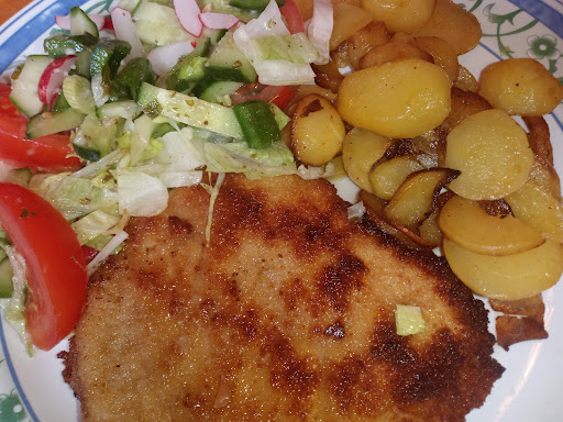 Speise: Ich empfehle Ihnen das Kalbsschnitzel mit Bratkartoffeln! Das Schnitzel und die Kartoffeln waren gut durchgebraten und gut gesalzen. Es wurde darauf geachtet, dass beides nicht anbrennt. Der Salat war gut geschmückt und war frisch.