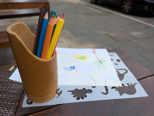 The service was outstanding! We were eating dinner with our two sons - the waitress was so patient and child oriented! She gave the kids painting kit while we were ordering and waiting. The food was very good, many vegan choices on the menu (just pay attention- there's vegan section in the menu, but it includes vegetarian dishes as well). The dishes came out one after another, in a good timing. While we were eating our sushi, the waitress came to ask if everything's okay, we said yes, but them my 5 yo son says "not everything", he explained her he's struggling with the chopsticks. She asked him if he'd like to get a children's chopsticks, he of course said he would. She went inside, and after few minutes came with these self-hacked chopsticks. I was so thrilled with her service! Clear...