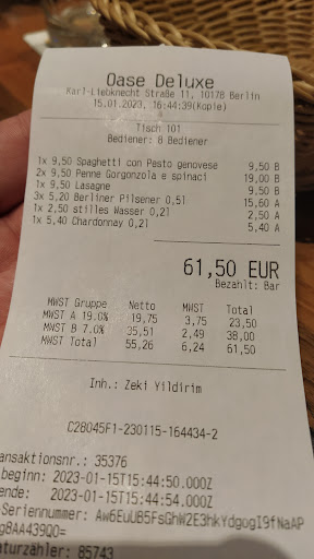 Read moreWe found this place to be a bit of a tourist trap. We were caught out after leaving dinner a bit late, with other restaurantsâ kitchens already closed for the night, and the waiter welcomed us in off the street. After quickly looking up the google rating, we thought we would be okay - but to be honest it was a very underwhelming experience. Food and drink were affordable but the quality matched the price - the chicken schnitzel tasted as though it had been frozen prior (and manufactured - the meat was minced and made into a chicken patty). Potatoes were nice. Cocktails had plenty of alcohol but no pizzazz, all served in normal tall glasses which you would use for your water. When we went to pay we were only then informed that the venue was cash only. Not having cash on us, we were forced to use their own ATM in-venue which came with a large fee, about 6 or 7 Euros. It was poor customer service and misleading not to inform us of this...