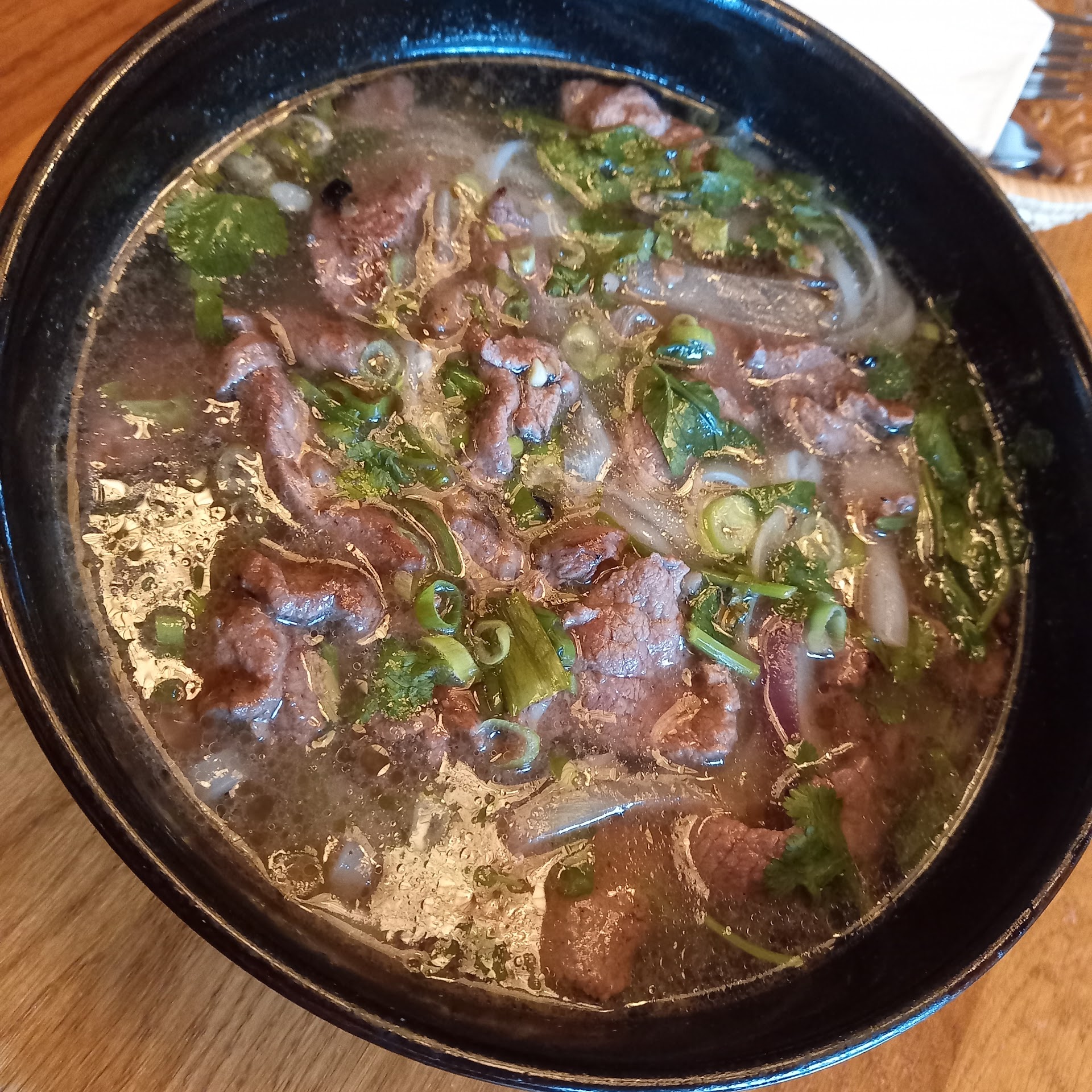 Read moreI got the only vegetarian special of the day -- crispy tofu on salad with wide rice noodles, my partner got veggie pho. The noodles were spot on but the sauces were odd, less or inappropriate spice from what I expect in Vietnamese food. For example the pho had no white pepper but the broth had sugary tinned or otherwise synthesised coconut milk, and my dish had less sauce / vinegar than I expected and the sprinkled spice on the top tasted like "Mr. Dash" or some such European standard. We were sitting right next to the sushi fish and it didn't look particularly good / fresh, but on the other hand the guys making maki were taking immense care and making beautiful things, and the place was fairly full with happy tables even though it was the weekend and it's in a business area. It was mostly groups of trendy adults (30ish?) but some families with children. Both Germans and international tourists. The service was pretty fast but kind of abrupt, they probably assumed we were tourists who wouldn't come back (wrong, we just...