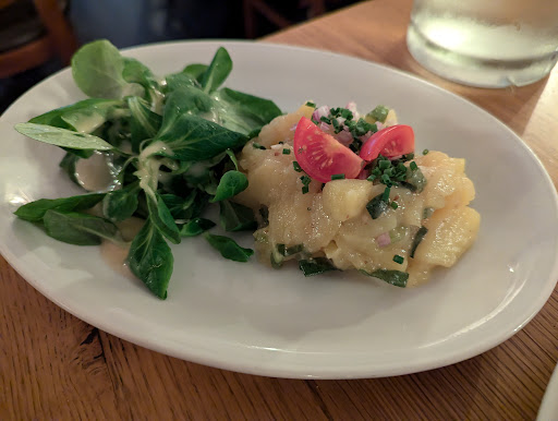 Read moreThere are German/Austrian restaurants you go to for that traditional beer-hall-style atmosphere and there are those you visit for a really good meal. This is the latter. They don't have communal benches or wear Lederhosen here. Instead, they have some of the best traditional Austrian dishes I've ever had. The (veal) schnitzel is cooked to perfection and melts in your mouth. (Ask for the Preiselbeeren because I don't think they come by default!) While the side portions are small, they make up for quantity with quality. The salad and potato salad were both fantastic. The entrees were so good, we couldn't resist the Kaiserschmarrn for dessert (FYI it takes time as they make it fresh). And what a fantastic decision. It was so fluffy and warm and perfect; it was in the top 5 of all Kaiserschmarrn I've had, and that's saying something. The service was really friendly and made sure we were taken care of at all times. And since it was raining during our visit, it was incredibly cozy inside with nice lighting and old-school but upscale ambiance. So TL;DR: come here for a slightly pricier chef's-kiss Austrian meal in a fancier setting. And make a reservation, as they...