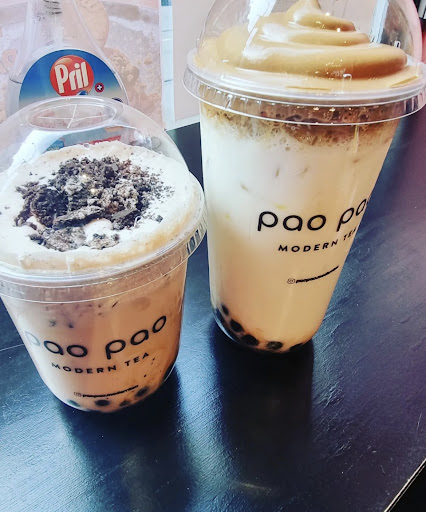 Read moreWhen I saw this pink cats in instagram I can't stop thinking about this place and finally I'm here!!! If you "buble tea" fan then you definitely should to visit @paopao.moderntea in Berlin - the perfect instagram place with delicious fancy drinks! 20 varieties of modern tea for everyone. Fruity, Milky (classic tea with milk(also with vegan option),Cheezo(with cream cheese) or Signature( tea, but almost like a dessert) We tried a lot, for example, matcha with soy milk, smooth Oreo with homemade cream, mango slushy with cream cheese(perfect for summer)... And our favorites are purple moon litchi (ideal for photos and a really creative idea) as well as my favorite creme brulee (really gorgeous tasty)! The price around 4-4.5 €,...