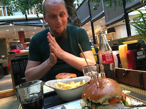 Food was decent, though. We tried burgers, beer and chocolate. Meat has taste and offered in three grades of roast. Bun is average, not especially tasty. I ate burgers twice tastier for half price. Also in Berlin. Standard beer. Chocolate is made from chocolate drops, not Nesquick. That is rare and cool.