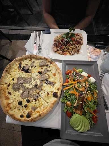Read moreOur friend who lives in Berlin recommended that we try this place out. We called early in the morning to book, and we were able to time a table for two at 9pm. So we went there and after we sat it took them a while to get us the menus and finally after the got us the menus it was only in german although we requested english menus, but they said they don’t have english menus they just have english menu. So we asked the waiter to help us ordering because obviously we don’t know german and we cant read the menu, she was very rude and her reply was sorry I cant help you I cant translate the whole menu for you, we were like we are not asking for you to translate anything just help us ordering whats your best seller and do you recommended and we highlighted to her that we don’t eat neither pork nor we can have anything that was cooked or contains any alcohol, she was very unhelpful so we ask her what would she recommenced we do to order she was sorry I cant help you, we were like so should we leave now or what? She was ya if you to leave you can leave if you want to stay you can stay! So the overall interaction was very bad, we ended up translating the menu on google instant translate, and we ended up ordering the truffle pizza and along with a seafood pasta and a salmon salad. The pizza was not bad but the other two plate were really bad we didnt like them they were very poor in dressings and...