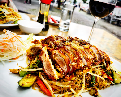 Read moreWir wählten in dem kleinen vietnamesischen Lokal, die Preisgestaltung ist als angemessen vernünftig zu bezeichnen, das Mittagsmenü und separat dazu zwei Tassen lose Blatt Jasmin Tee. Die Bedienung war aufmerksam, nahm unsere Bestellung auf und kurz darauf brachte sie zwei dekorative, große Becher mit Teebeuteln - ohne den schönen Duft nach Jasmin. Enttäuschend! Wir hatten jetzt etwas Zeit bis die Vorsuppe serviert wurde und begutachteten das Interieur, schlichte in die Jahre gekommene Holzmöbel mit wenig Sitzkomfort, welches puristisch wirkt. Das Essen kam, eine normale Portion, geschmackvoll in dezentem Porzellan schön angerichtet und verlockend aussehend. Je länger wir aßen, das Hühnerfleisch war kräftig versalzen, rückte das restliche Essen zunehmend geschmacklos in den Hintergrund. Am Ende lies ich mein Essen stehen und insgesamt wir waren wir sehr enttäuscht. Das war kein gelungener Lokalbesuch. Auch scheint das Lokal nicht barrierefrei zu sein, die sauberen Toiletten liegen fußläufig im Ersten Stock. Wenn wir nicht die unangenehme Erfahrung gemacht hätten, wir würden das Lokal empfehlen und bei 3,5 bis 4 Sternen...