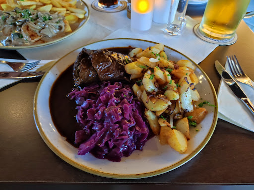Read moreUnsere Erwartungen waren hoch...alles frisch zubereitet und lecker wie bei Muttern...so nahmen wir an. Leider war dem nicht so. Die Leber schwamm in einer Blutlache...der dazubestellte Rotkohl war verkocht und mit Nelkenpulver (waren noch Klumpen vorhanden) total überwürzt. Er wurde in Extraschalen hingestellt und mit 3,50 Euro berechnet. Der zum Essen dazugehörige Gurkensalat wurde eingespart und nicht geliefert...aber auch nicht vom Preis abgezogen. Schnitzel mit Bratkartoffeln und Setzei waren total nüchtern und die Bratkartoffeln auch nicht knusprig. Leider waren am Nebentisch mehrere Kinder aktiv und der Gräuschpegel auf die Dauer unerträglich. Keiner sagte Mal etwas, damit die Kinder ein normales Verhalten annahmen. Wir hatten auch zwei Kinder in dem Alter dabei, die sich aber benehmen konnten. Alles in Allem war es für uns der reinste Reinfall...sehr schade, da es meine Mutti (89) wahrscheinlich nicht noch einmal in ein Restaurant schaffen wird und es kein schöner...