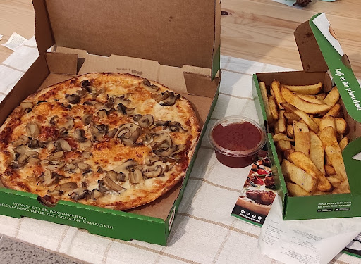 AMAZING 😍🤩 I ordered via delivery 🚚 and you guys were super fast! Everything was ready instantly and took like 15/20 minutes to come home.The delivery guy came earlier than expected, loved it! The Pizza was delicious and the Pommes too, super abundant. Today was a kinda cold and rainy day and the food still came warm and well presented, I liked the package a lot! Thank you so much for your efficiency and fast service, I'll definitely buy again in the future ❤️ And thanks to the delivery guy for his patience and great...