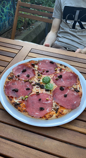 SO SO SO SO SO SO SO GOOOOOOOOOOOD!!!!!!!!!!!!! I have been wanting to try this place for sooooo longgggg timeeeee and I am so blessed I finally made it!!!! Ordered two pizzas because I wanted to try more than one flavor, and I love seafood and truffle on pizzas!! They both were phenomenal!!!!!!!! The scampi had a really good amount of shrimps/prawns, and they were so tender that you immediately know these are fresh and good. The dough was so thin that I rolled each slice and ate all the toppings in every bite. The edge was crispy which was another thing I expect from a good pizza. The pizzas were served with chili oil and garlic oil and these are BOMB. Total game changer. I could drink the whole bottle if they allowed me. The other one had some type of ham and truffle tipping. I am not a big fan of hams or preserved meats, but their pizzas are a different story. Everything was so harmonious. I personally lived garlic oil on scampi and chili oil on truffle pizza. I will go back the next time I travel to Berlin. This is one of my top berlin...