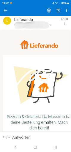 Read moreWir haben heute eine Pizza Scampi und Focaccia Tiroler Speck bestellt. Das war noch nicht perfekt, aber zumindest geschmacklich gut. Erster Kritikpunkt: Das Essen kam lose in Alufolie statt in der Styrobox. Das wäre an sich kein Problem, da die Pizzeria nur knapp 400 m von uns weg ist, aber leider war das Essen nicht mehr richtig warm. Das war ein bißchen schade. Zweiter Kritikpunkt (auch wenn ich das erwartet hatte bei dem Preis): keine Scampi auf der Pizza Scampi, sondern nur Shrimps bzw. Garnelen, also Gamberetti. Scampi, auf Deutsch Kaisergranat, sind etwas Anderes. Vier Sterne als Neulingsbonus; schafft Euch mehr Styroboxen an, und nennt Eure Pizza "Pizza Gamberettti" (oder macht Scampi drauf für 18,50), dann wird das.