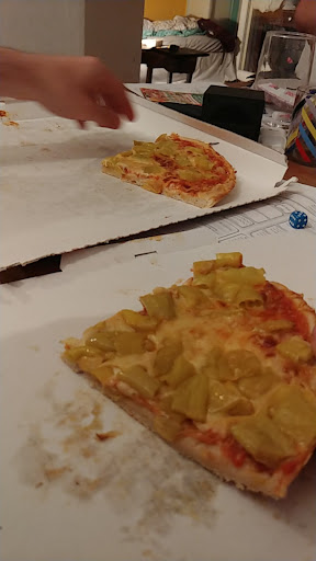 Jetzt hatt ich mal einen Flyer von La Mia mitgbracht und damit geworben, dass es dort leckerer und günstiger ist.