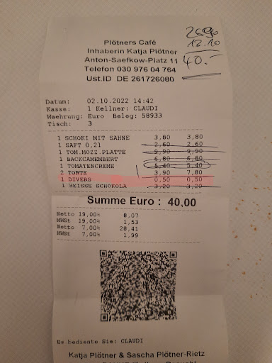 Café Plötner ist seit mittlerweile 8 Jahren mein Lieblingscafé. 1.Stimmt das Preis-Leistungsverhältnis 2.Ich liebe einfach normale Sachen wie Geschnetzeltes, Königsberger Klopse oder ein schönes Stück Torte, eben Sachen deren Namen man kennt wenn man die Karte liest...das bekommt man hier. 3.Sascha und Katja- Die Betreiber des Café Plötner, wissen einfach wie man seine Gäste zuvorkommend behandelt. Immer aufmerksam, immer freundlich, immer ein Lachen. Man merkt, daß man GERN bekümmert wird. 4.Niemand wird ausgeschlossen....Nicht Hund,Kind,Rollis ect
