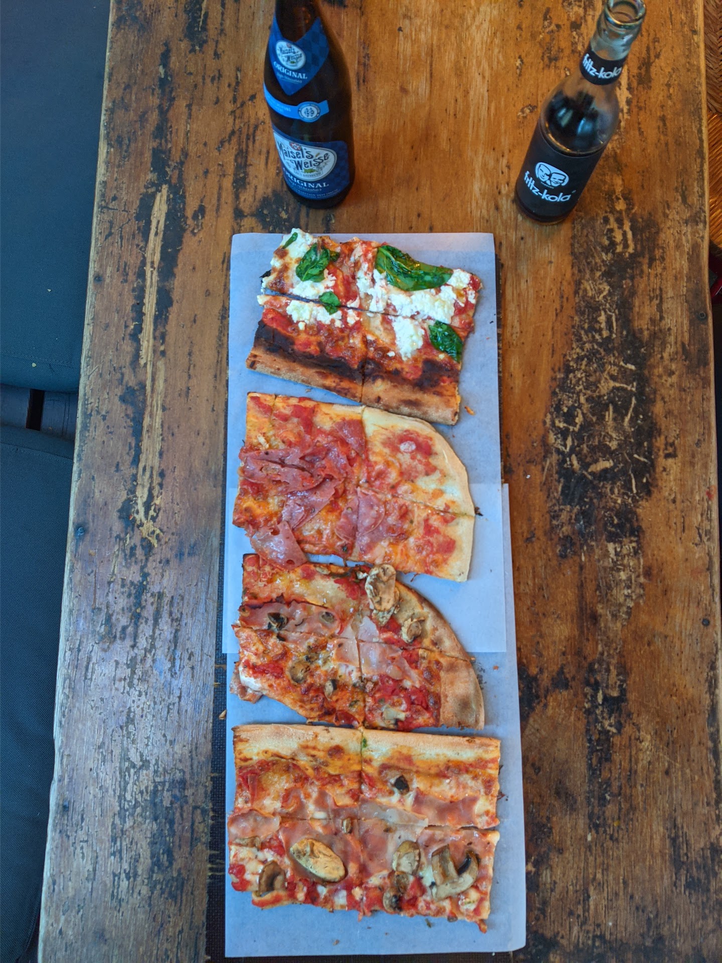 Sadly the quality of this place has lowered dramatically over the years. While it used to be a great place for lazy dinner, with good pizzas, some choice for meat and vegetarian pizzas, and always friendly staff, it now became a place for not-even-so-cheap pizzas that taste like cheap pizzas. The dough is not cooked through, there is a lot less variety of pizzas offered, and even among the “different” ones, the taste is quite similar. We had for example the pesto (basically a margarita with a bit of pesto verde), the récola (a margarita with récola on top) and the aubergine ones (a margarita with aubergine slices). There is no cheese variation for example. The Gorgonzola - radicchio had very little cheese, a whole corner of the pizza was just dough (so 1/6th of the piece).