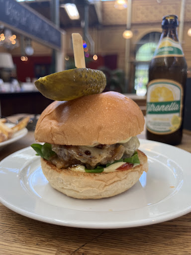 Read moreSo i had the dry aged burger + cheddar, their homeade fries, chili mayo and radler.