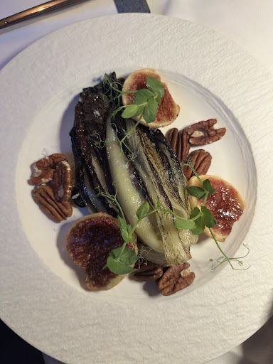 Each course was a delight, showing an incredible level of thoughtfulness, balance, and creativity. We started with two outstanding appetizers: a radicchio dish with a homemade miso mayo and marinated figs—which, according to the chef, will be one of the first new vegan options officially added to the menu—and some delicate beetroot ravioli that were simply divine.