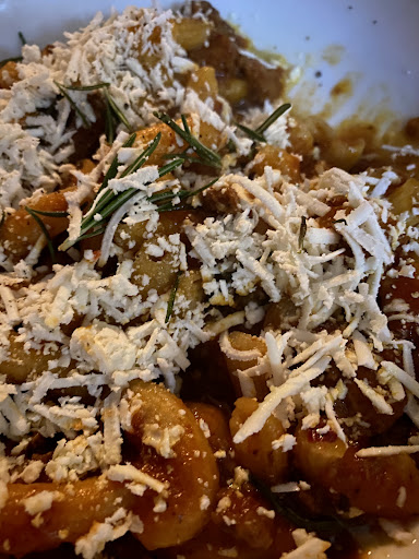 We ordered appetizers and pasta afterwards. The appetizers arrived after 30 minutes – super salty sardines and a polenta crostino with fontina and mortadella. The waitress was supposed to bring us new cutlery, but she forgot again, as she was too busy cleaning and counting money. The pasta came after 15 minutes. I ordered tagliolini alla norcina, which were okay and the pasta was fresh. However, the taglioni from my partner were underwhelming and tasteless. We were still very hungry, which is unusual for me after an appetizer and a plate of pasta, so we ordered a cannolo each.