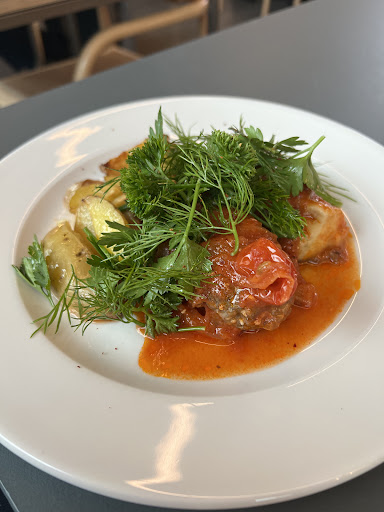 Read moreIt's not common to find in Berlin contemporary fine dining, the scene here isn't anything like Copenhagen, so this place is a try out in that direction. Service was very pleasant, everyone was nice and helpful, so looks like on that front they did well. The place's interior is set up to the latest trends, everything is very cute though not very personal (it looks a bit like a trendy furniture shop from outside). One of us had the menu (55€) and the other had a first (18€), main (35€) and dessert (12€) we also had bottle of (filtered tap) water (4€) and bottle of wine (35€). The food was nice, mostly tasty, but nothing was extraordinary with the exception of the menu dessert, lemon tart. On one hand, there was nothing bad or not to our liking, on the other hand paying +/- 160€ begore tip is a seriously exaggerated price for the dining experience here. Just a short while ago we had a dinner similar in dishes/alcohol quantity at a similar level of fine dining restaurant and that ended with 100€, which was pretty much justified, so I'd say had the price tag here was 20-30% lower, it would be more according to the product you get. For the current price level I'd expect the experience to be above what they currently supply, so it was nice giving it a try, but it is unlikely we'd return or recommend it...