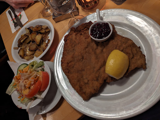 Ā Ā Ā Read moreHad a lovely dinner here with some friends who also appreciate a hearty German meal. Walking in, you can tell this place is legit, as it has that pub-in-the-woods decor and is full of locals speaking German. We were greeted by a lot of friendly staff who seated us right away and got us drinks very quickly. The menu is ginormous, so lots to choose from! I got the traditional Kalbschnitzel and the house beer and both were delicious. All the portions are very generous and the samples I tried from others' plates were all fantastic. We were there for a few hours and the service was super nice and attentive the whole time. We couldn't resist when we saw Kaiserschmarrn on the menu, and we were not at all disappointed. Definitely going to suggest this any time we're back in the area visiting our friends in...