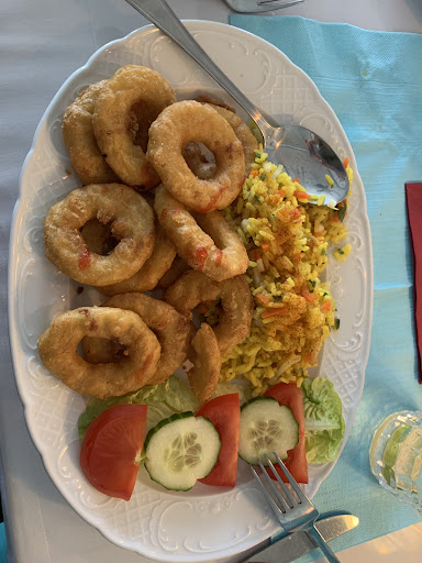 The Calamari was €15.90 and was clearly frozen, and tasted like it was from Lidl. That’s not me being mean, I mean that literally. It had sweet chilli sauce on it. It came with minute rice with curry powder on top. Absolutely ridiculous that it costs that much, and we were also charged €4 for garlic bread which was the best part of the meal. I asked for some tzatziki and it was dill and chilli(?) yogurt!? I think the waiter realised we didn’t like it and was defensive. The Greek salad was 90% onions!! At least the drinks were well priced, shame we didn’t get...
