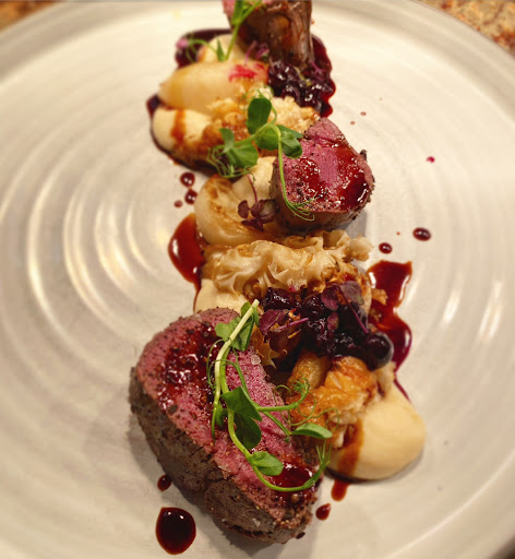 Zur Vorspeise, es gab Artischocke meliert und frittiert auf rotem Chicoree mariniert mit French Dressing. Geschmacklich okay, aber auch nicht mehr. Durch die frittierte Artischocke kam das Ganze sehr fettig herüber in Geschmack leider. Wenn man solche Sachen frittiert dann ist es sehr zu empfehlen eine Pfanne aufzustellen mit Olivenöl und nicht im Pommes Fett das Ganze durchzuziehen.