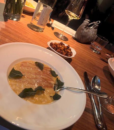 Not sure if the restaurant is ready to host events like a Silvester gala dinner yet. No decoration, no background music. Service disorientated. One guest got two starters before having been able to start with the first one, while the rest of the table didn't receive any food. Once arrived the menu got swapped. Course 2 before course 1 etc. Some courses went back to the kitchen e.g. due undercooked beef cheeks. Great wine / champagne menu though. Some staff's attitudes could be improved. Saying we are the only table who returned the main but when challenging that the neighbours table sent them back too I received the answer: I didn't look after this table.. macarons were very nice, but I assume they got bought and not self made. The Afterparty where the owner met some old friends at the bar made them play the song ("DJ" (e.g. Spotify playlist - no live DJ seen) arrived finally at around 00:30 and the song "the boys are back in town" got played around 5 times in a row. No service at the table in the bar area during the...
