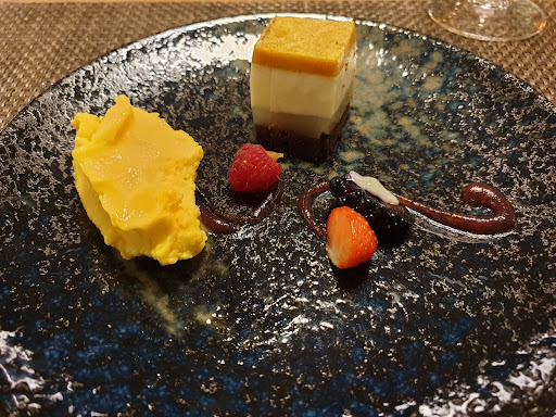 Den Hauptgang hatte ich etwas verändert. Schweine Filet mit Tomate Mozzarella überbacken, Pesto, Grillgemüse und Butterkartoffeln. Ich bat das Fleisch weg zu lassen und etwas mehr Grillgemüse dafür. Bekommen hatte ich dann Grillgemüse, sehr kleine Portion, und gefühlt ein paar mehr Kartoffeln. Von Tomate und Mozzarella keine Spur. Man hätte doch, anstatt das Fleisch, das Grillgemüse damit überbacken können.