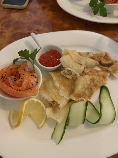 Read moreSchade - mit jedem unserer fünf Besuche nachgelassen, waren wir zum letzten Mal dort. Wir waren zwischenzeitlich 4x zum Brunch am Sonntag und einmal zum Abendessen dort. Das erste Frühstück war in Ordnung, die Bedienung durch die blonde Dame sehr freundlich und fix. Das zweite Mal haben wir am Sonntag das Brunchbuffet gewählt und waren von der Frische, der Auswahl, Qualität und dem Geschmack wirklich begeistert, die (gleiche) Bedienung wie beim ersten Besuch freundlich und versiert. Der folgende Besuch war dann die erste Enttäuschung - das Buffet (eigentlich bis 15.30 Uhr) bereits um 13 Uhr halb abgeräumt, nachgefüllt wurde entgegen der Ankündigung nur teilweise und schleppend, der Service einer anderen Dame nachlässig, unfreundlich und so langsam, dass der Kaffee den Weg immer nur kalt zum Tisch fand. Die Speisen kamen alle direkt aus dem Kühlschrank und wirkten so, als wären sie schon zuvor gefertigt, geschmacklich leider kein Vergleich zu den Vorbesuchen, die Präsentation lieblos, dekorationsfrei und ebenfalls kein Vergleich zum Vorbesuch. Ok, kann sicherlich mal vorkommen... Der Besuch zum Abendessen leider wieder mit gemischter Erfahrung: Blinis ok, aber nix besonderes , das Boeuf Stroganoff leider völlig zäh, nur lauwarm und für den Preis sehr übersichtlich, Teller schmucklos ohne jegliche Dekoration (wirklich nur 3 Löffel Reis und 3 Löffel Boeuf obendrauf, das war's ... Heute waren wir nun wieder da, leider erneut mit identischer schlechter Erfahrung: spartanische Auswahl, alles wieder vorgefertigt (selbst die Kartoffelpuffer und Blinis eiskalt und matschig) und direkt aus der Kühlung, die meiste Zeit mehrere leere Teller und Platten auf dem Buffet, nicht mal für ein Schälchen mit Smetana reichte es heute. Die eigentlich warmen Speisen (Kartoffeln und Boeuf Stroganoff, Backfisch und Reis) ebenfalls komplett kalt und z. T. schon mit "getrockneter Haut" aus eingedickter verkochter Soße. Das Personal bestand wieder aus zwei jungen Damen, die so wirkten, als hätten sie ihrem ersten Arbeitstag in der Gastronomie. Das wäre zu verschmerzen gewesen, allerdings waren die beiden die meiste Zeit eher mit sich selbst beschäftigt statt mit den Gästen oder mit dem Abräumen schmutzigen Geschirrs. Auch andere anwesende Gäste fragten ständig nach fehlenden Tellern, Suppentassen oder dem Zeitpunkt des Auffüllens leerer Speisen oder fehlender Getränke, erst dann wurde kommentarlos und mit deutlichem Ausdruck des Missfallens im Schneckentempo gehandelt - oder schlicht ignoriert. Die Nachfrage, ob es geschmeckt habe, habe ich mit Hinweis auf die beschriebenen Mängel verneint - null Reaktion, nicht mal eine Entschuldigung - ok, vermutlich nicht anders zu erwarten bei auch sonstiger völliger Überforderung. Nun, aktuell sind sicherlich schwierige Zeiten, aber bei einer Endsumme von fast 40 € ohne Getränke zu zweit sind sowohl die Qualität der Kühlhausspeisen als auch der mangelhafte Service völlig unangemessen bis ärgerlich ... offensichtlich hat dieser wirklich traditionsreiche Laden seine besten Zeit hinter sich. Wirklich, wirklich...