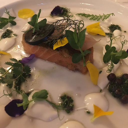 Service und Ambiente waren wirklich 5 Sterne wert. Sehr aufmerksames, freundliches Personal, Tisch liebevoll zum Hochzeitstag gedeckt. Der Rieslingsekt war gut temperiert und wusste zu gefallen. Der Rotwein (Cote du Rhone) war schon am Kippen. Schade. Die Erbsensuppe mit Garnelentartar war ok. Eine gewisse Frische, aber etwas uninspiriert. Das Filet vom Rind war für den Preis qualitativ überschaubar. Das zergeht einem in manchem Steakhaus für 10 EUR weniger auf der Zunge. Das war hier nicht so. Der Lachs meiner Frau war innen noch kalt und nahezu roh (nicht glasig). Insgesamt alles ok. Nicht wirklich schlecht. Aber vor dem Ambiente und dem Preisniveau fiel die Küche doch etwas ab. Trüffel allein machts nicht. Da darf mehr Kreativität für das Geschmackserlebnis sein. Als sorry gabs einen Espresso. Fürs Ambiente den Service und den Rieslingsekt + Rosechampagner 3 Sterne. Aber leider keine Empfehlung. Ein Haus dieser Kategorie sollte einen ambitionierteren...