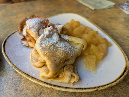 We went here not knowing what to expect. It's far enough away from tourist areas to be legit but also right near a busy street. But the reviews looked good so we went for it. And man am I glad we did! There is wonderful seating right outside which is surprisingly peaceful for being so close to Schönhauser Allee, and the friendly service came to greet us. The menu is big with lots of temptations, but I took a gamble (because I don't normally eat fish as an entree) with the Schnitzel "Klement's" which is like a Cordon Bleu with lox, cheese, and pickles. Hooooly smokes, it was tasty! I was thoroughly impressed. While I was snarfing it down, my date also offered me some of her "normal" schnitzel, which was also delicious. Pro-tip: When you hear them pounding away in the kitchen after you order, you know you're getting fresh schnitzel. We were so stuffed after our schnitzels that we couldn't eat another bite. At least until the waitress informed us they had a Kaiserschmarrn-like dessert. I should note that it's not actually Kaiserschmarrn -- it's more of a powdered crepe with apple compote on the side, but it is just as delicious and I couldn't stop shoveling it into my mouth. Even though I needed to lie down afterward (or maybe because I needed to), this place is going on my list of top German spots in Berlin. Stop in and maybe you'll see me napping...