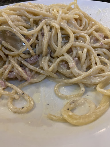 Viele gute Bewertungen, überschaubare Karte, preislich im Rahmen - wir waren heute Abend zu dritt spontan dort essen. Das Ambiente ist eher schlicht, der Service sehr nett, beim Blick in die Karte gefiel uns, dass auch die Zutaten kurz erwähnt sind - „etwas Knoblauch“ oder etwas Sahne oder, beim Klassiker Spaghetti Carbonara, Pancetta und Grana statt Guanciale und Pecorino wie traditionell üblich, ok, klang nach einer Variante, warum nicht. Wir bestellten eine Insalata mista, das Rindercarpaccio, Spaghetti Carbonara und Bistecca alla griglia. Getränke kamen zügig - der dünnste Aperol sprizz, den ich je getrunken habe. Der Salat als Vorspeise ok, allerdings mit einem extrem süßen klebrigen Dressing. Dann die Hauptspeisen, uff. Das Carpaccio aus fettdurchwachsenem Fleisch war mit demselben süßen Dressing garniert wie der Salat (wieso???), ein paar Balsamicokleckse, das auf der Karte versprochene Olivenöl glänzte durch Abwesenheit und stand auch nicht zur Selbstbedienung auf dem Tisch. Die paar darübergehobelten Parmesan?späne konnten das auch nicht mehr rausreißen, essen ließ sich diese viel zu süßklebrige Angelegenheit nur durch ordentliches Nachsalzen. Die Bistecca alla griglia kam eindeutig aus dem Kontaktgrill, Gargrad ok, aber ein relativ kleines, dünnes Stück mit ein bisschen unmotiviert daneben liegendem Beilagengemüse und Rosmarinkartoffeln. Am schlimmsten war die Carbonara: das waren keine Pancetta-, sondern relativ magere Bauchspeckwürfel, die Sauce eindeutig nicht nur mit Eigelb und Grana gebunden, sondern eine dickliche Sahnesauce. Mit italienischem Essen hatte nichts davon wirklich viel zu...