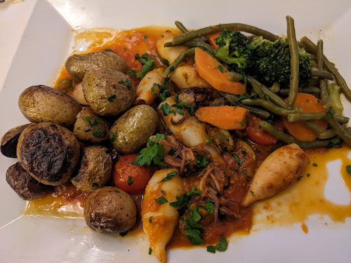 My husband and I came here with a Macedonian friend of ours. The food was tasty, similar in some ways to Greek or Turkish. However, our friend said that it was not very authentic. For example, she said the main difference between the basic salad in Greece and in Macedonia is that the Macedonian salad doesn't have olives, but the salads here come with olives. The Sarska-Hacksteak was filled with white goat cheese, but in Macedonia, it is filled with a yellow cheese. She asked the waiter (in Macedonian) why it was made that way, and he replied, "That's how the Germans like it." The menu was also missing a number of dishes that she said were very typical Macedonian dishes. That all being said, the waiter said that if we had called a few days ahead and asked for authentic Macedonian dishes, they would have made them. Another funny note -- our Macedonian friend doesn't speak German, and they don't have menus in Macedonian! We started to translate the menu from German before she just started discussing it in Macedonian with the server.