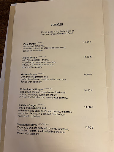 Read moreWir sassen draussen im Hof. An sich schön, aber leider durch die Nähe zur S-Bahn viel zu laut. Alle paar Minuten musste man sich anschreien. Auf der Karte stand ein Gericht mit „dazu kleine Ofenkartoffel“. Als ich bestellte, bekam ich gebratene Drillinge. Ist für mich absolut nicht das gleiche. Die Bedienung meinte (darauf angesprochen) „ja, wir hatten früher die Ofenkartoffel mit Alu im Ofen gebacken, jetzt sind die Drillinge bei uns die Ofenkartoffel“. Ich verzichte momentan weitestgehend auf Fette und Öle, was bei der Speisekarte des Nolle sehr schwer ist. Wäre ich alleine essen gewesen, hätte ich selbstverständlich gleich ein anderes Lokal gewählt, wir waren aber mit Arbeitskollegen dort. Also musste ich die für mich beste Alternative wählen und habe bei der Bestellung des Salates darum gebeten das Balsamicodressing bitte ohne Öl zuzubereiten (mache ich daheim auch so). Was man mir hinstellte war dann pure Essig Essenz im Becher mit dem Hinweis „ist sehr stark und scharf, passen Sie auf beim Dosieren“. Ich weiss, Sonderwünsche bei Kunden sind immer Aufwand und etwas ärgerlich, aber das fand ich wirklich witzlos. Ich wollte dennoch Dressing, Gewürze und Kräuter wären ok, ich bat lediglich um den Verzicht von Öl. Die Gemüselasagne meines Kollegen hat ihm ebenfalls nicht wirklich ein Lächeln ins Gesicht gezaubert. Insgesamt habe ich mich als Gast so mittel-wohl gefühlt, zumal man das Gefühl hatte dass unsere Bedienung ihren Job nicht wirklich liebt.