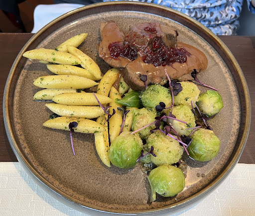 Ich habe mir gestern mal die Mühe gemacht und mir gefühlte 100 Rezensionen durchgelesen. Bei manchen war wirklich schämen angesagt. Wir kennen das Pankoff jetzt seit etwa 2,5 Jahren. Mein Mann und meine Mutter gehen recht regelmäßig dort essen und waren noch nie unzufrieden. Ich war heute auch mal wieder dabei und wir hatten absolut nichts zu meckern. Mein Mann und ich hatten die Gänsekeule mit Apfelrotkohl und Grünkohl, meine Mutter den Wildsch.weinbraten. Unsere Teller waren ratzekahl leer gefuttert😁 Die Portionen waren völlig ausreichend und sättigend…und mein Mann und ich sind bekennende Vielfutterer🙈😉😇 Ich musste Rot-und Grünkohl zwar etwas nachwürzen, aber mal ehrlich, wozu hat man denn Salz- und Pfefferstreuer am Tisch? Besser ein wenig nachwürzen als sich über versalzenes Essen vom Koch aufregen oder? Die Tische waren sehr hübsch gedeckt. Ein bisschen ungünstig ist es allerdings tatsächlich, wenn man zu den Zeiten dort essen geht, wenn die angrenzende Seniorenwohnanlage verköstigt wird und alle anderen Tische sozusagen belegt sind. Das ist nicht das Problem, denn die alten Leutchen sind wirklich putzig, aber die Fluktuation und Rumgewusel sind schon nicht wegzuleugnen. Aber hey…wem das nicht gefällt, der kann ja am Wochenende oder zur rentnerfreien Zeit etwas später dorthin gehen. Die Mitarbeiter waren auch stets nett und freundlich. Wir mögen es dort auch gern im Sommer, wenn man draußen sitzen kann. Klar, dass mancher auch bei den Preisen mit den Ohren schlackert, aber es ist halt nichts mehr, wie es früher war. Da hat auch Corona bestimmt noch für gesorgt. Aber ganz ehrlich, Ihr könnt nicht Qualität erwarten, aber nüscht dafür zahlen wollen. So…nun aber genug getippt. Wir kommen gern wieder… Achja…eins noch…fehlende Parkplätze wurden hier irgendwo bemängelt…nun ja…der clevere Bürger fährt direkt nebenan ins Rathauscenter. Eine Stunde parken ist frei. Der nachfolgende Euro bringt Euch nicht um. Zu den Fotos noch: Die Saucen wurden separat gereicht, sind auf den Fotos nicht zu sehen. Schöne Grüsse. Nachtrag für den Inhaber: Wir hatten uns ja letzte Weihnachten im Lokal schon mal unterhalten, weil ich meine Rezension gesehen hatte hier, Sie aber nicht. Wir hatten gerätselt, woher das kommt. Gestern habe ich per Zufall gesehen, dass die Rezension nicht veröffentlicht wurde wegen Verstoßes gegen irgendwelche Richtlinien. Ich hab absolut keine Ahnung, was da schlimmes drin gestanden haben...