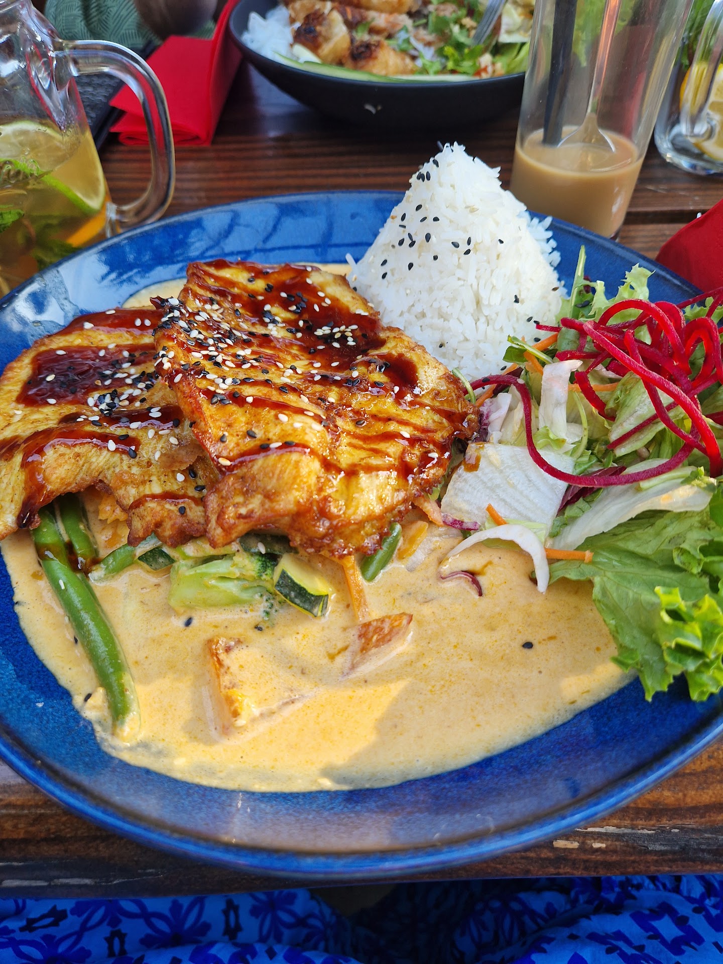 Gebratene Udon-Nudeln mit Tofu: Die gebratenen Udon-Nudeln waren ein absoluter Genuss! Sie waren perfekt gebraten, sodass sie außen leicht knusprig waren, aber innen noch schön saftig und weich blieben. Der Tofu war hervorragend gewürzt, außen schön kross und innen zart, was zusammen mit den Nudeln eine tolle Texturvielfalt ergab. Die Kombination aus Sojasauce und den frischen, knackigen Gemüsebeilagen rundete das Gericht perfekt ab. Es war ein sehr befriedigendes und schmackhaftes Gericht, das ich wirklich jedem empfehlen kann.