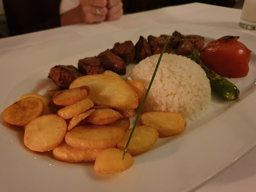 Read moreMehr Schein als Sein. Das Restaurant sieht eigentlich sehr schick aus, weswegen wir auch davon ausgegangen sind, dass es dort schmeckt bzw. schmecken würde. Totaler Reinfall. Ich bin selber Türke und kenne mich mit türkischen Küche sehr gut aus, und ich kann nur überzeugt sagen, dass das mir servierte Essen nicht geschmeckt hat. Als Vorspeise gab es Suppe, die wirklich fade und abgestanden schmeckte. Der Salat, denn es dann zur Hauptspeise mit dazu gab, war ok. Genauso okay war das Brot für 5 Euro. Die Beilagen zum Brot (Hüttenkäse und Butter) haben nicht geschmeckt. Kommen wir zur Hauptspeise, wir haben einmal Hähnchenspieß und Adana-Kebab genommen. Die Wartezeit war eher lang in Anbetracht dessen, dass wenig Gäste da waren und die Bestellung von Anfang aufgegeben wurde. Die Teller werden eher lieblos dekoriert. Das Hähnchen war eigentlich ganz okay, bis auf 1 bis 2 Knorpeln die man nicht essen konnte. Was aber das Highlight war ist der Adana-Kebab, er roch wirklich streng nach Tier, so etwas darf nicht sein, dass ist ein Zeichen, dass viel Fett benutzt wurde und das es sich um kein gutes Fleisch handelt. Ich konnte jedenfalls kein bisschen von dem Fleisch runterbekommen. Geht wirklich nicht. Die Weinschorle schmeckte auch nicht gut, eher wie beim Discounter. Die Bedienung war nett aber mehr auch nicht. Ich hätte echt gerne mehr Sterne gegeben aber die abgestandene Suppe, das streng riechende Fleisch und die billige Weinschorle ziehen alle positiven Punkte runter. Preise viel zu teuer, auch wenn es für die Lage okay wäre, aber für das Essen selber definitiv zu teuer. Würde nicht wiederkommen und auch nicht...