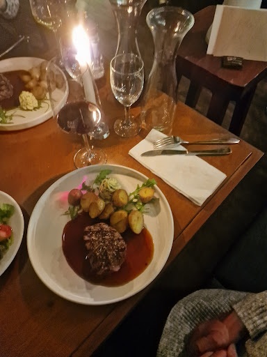 Read moreVor Jahren sind wir eigentlich nur hierhergekommen, weil ein guter Freund von uns hinter der Bar gearbeitet hat. Doch seither kommen wir immer wieder und sind noch nie enttäuscht worden. Und das nicht nur, weil das Essen ja einfach genial schmeckt. Besonders Fleischesser kommen hier auf ihre Kosten: die Steaks, die bei Google hier gar nicht erwähnt werden, kommen in verschiedenen Größen und Qualitäten. Aber sind immer auf dem Punkt perfekt gegart. Wer medium rare will, bekommt es genau so. Wo findet man das noch? Und das zu einem Preis, der zwar die stets gute Fleischqualität berücksichtigt, aber bei weitem nicht übertrieben ist. Gott sei Dank hat das Restaurant die Pandemie gut überstanden, dank der genialen Idee, einen Lieferdienst zu etablieren und dafür einen Bereich abzuteilen. Dafür sind eben die Pizzen und Pasta sehr gut zu gebrauchen, die auch stets frisch und knusprig aus dem Steinofen kommen. Habe ich schon die Rosmarin Kartoffeln erwähnt? Unbedingt probieren. So kommen auch Nicht-Fleischesser hier voll auf ihre Kosten. Aber die fünf Sterne gibt es nicht nur fürs Essen: genauso wichtig ist das Wohlfühl Ambiente. Und dafür tragen nicht nur die erwähnten wandhohen Weinregale bei. Die übrigens nicht nur Deko sind, die Weine werden gerne getrunken und man sollte immer ein Ohr für die sehr guten Weinempfehlungen haben. Sondern auch das Team, dass auch seit Jahren ziemlich unverändert ist. Was ja auch für ein Lokal spricht. Stets werden wir aufs herzlichste und persönlich begrüßt. Mussten noch nie lange auf einen Tisch warten und saßen immer gemütlich. Trotzdem empfehlen sich Reservierungen, wenigstens noch am gleichen Tag. Und was wäre das beste Essen ohne einen guten Service? Eben, und darum geht unser ganzer Dank an das Team, vor und hinter dem Tresen und...