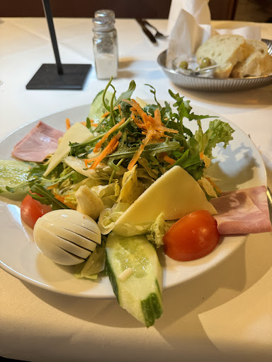 Insgesamt war die Zusammenstellung gut, aber der Geschmack von Schinken und Käse war zu mild - hier hätte ich etwas aromatischeres erwartet. Die Artischocken waren gut - aber die Oliven, die als Amouse Bouche gereicht wurden, hätten dem Salat auch gut getan.