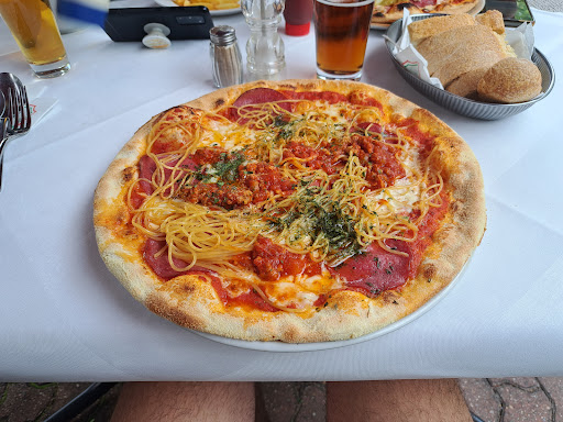 Meine Tagliatelle mit Lachs und Shrimps waren okay, wenn auch etwas zu wenig gewürzt, aber dennoch etwa das, was ich erwartet hatte. Lediglich die Shrimps schmeckten sehr fad bis wässrig. Die Pizza Diavolo meiner Begleitung erinnerte mich an alles außer einer Diavolo. So hatte ich diese jedenfalls noch nie zuvor gesehen. Noch dazu wurde diese auf einem Teller serviert, bei dem schon an einigen Stellen der Rand abgeplatzt war. Geschmacklich fand ich sie persönlich okay, meine Begleitung nicht.