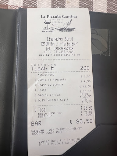 Read moreIf you want to really find an authentic Italian experience you must go in la piccola cantina! We went the first time for a friend’s birthday and since then became our favorite place! The restaurant is not to big but really cozy and now they have also a really nice place outside,I notice also the attention in the guest in the toilette, were you can find also different stuff for woman(this one is really difficult to find also in fancy restaurant)! The service staff is really friendly, and knew really well how to suggest base on your taste. Is a restaurant were the family are welcome,we have three kids and there with the waiter the were having fun and you can feel that are welcome:) now we come to the best part ,the dishes, since you try one time, next time is always more difficult to choose, because you really would like to order all menu, in the plate you can see the passion of the chef and the attention to choice for good high quality raw materials, my husband is a chef too and really notice this ! Please continue like this and we will continues to suggest your restaurant to everyone we...