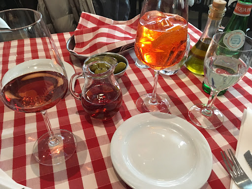 Read moreDas Lokal ist weder Hip noch Chic, ist sehr eng bestuhlt, oft sehr voll, die Deko aus den 60er Jahre mit entsprechenden 60er Jahre Pflanzen auf den Fensterbretten. Fesche, Trendy Jugendliche Charlottenburger waren an dem Abend weit und breit nicht zu sehen. Die Tische haben zwar eine Stoffdecke, die Servietten sind aus Papier und das Besteck ist nicht sehr hochwertig... genauso wie die Menükarte in Din A4 Blister. Das Personal braucht (bei nicht Stammgäste) etwas Zeit um auf Temperatur zu kommen... Die Preise: etwas sehr gesalzen. Das Essen ist Okay, aber nichts besonderes, ein carpaccio vom Rind ist kein Hexenwerk. Die gratinierten Jakobsmuscheln hatten ihr delikates Aroma durch zu viel Gratin-Soße und Käse verloren. Das Rinderfilet war dagegen wie bestellt à point gegart und zart. Die Nachspeisen wurden ausdrücklich ohne Sahne bestellt, sind typisch italienisch, werden gerne mit Sprühsahne serviert und sind anscheinend nicht hausgemacht. Die Cassata war aber in Ordnung. Alles in allem überteuert und durchschnittlich. Was aber sehr störend und unangenehm ist sind die Küchengerüche die sich im gesamten Lokal verbreiten und natürlich vor Kleidung keinen Halt machen, so als hätte man Tage in einem billigen engen Pommes...