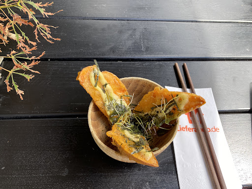 There I ordered the lunch menu with an appetizer and a burger. For the appetizer I had the sweet potatoes, they were very good and so was the sauce they came with. The main dish I took was the Golden Burger, it was delicious. The aubergine with peanut sauce, a fresh salat and pickles, and to top it off the fried bun. Even for the amount of vegetables I wouldn't say it is healthy. But I wasn't expecting healthy of a burger anyway, so all's good.