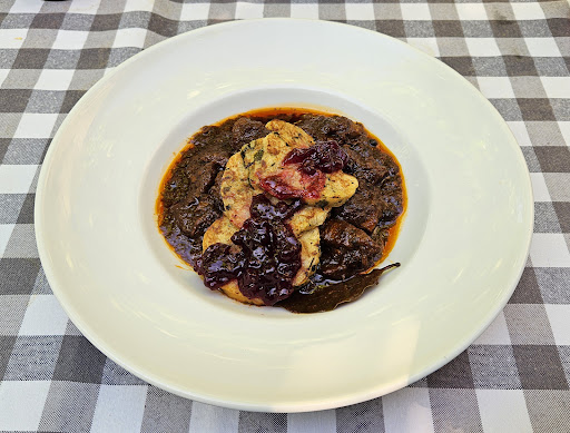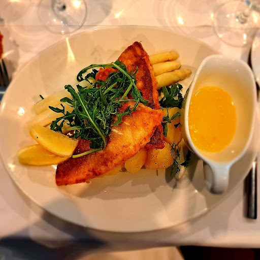 Read moreWir hatten eine Tischreservierung getätigt und waren das erste Mal dort mit insgesamt 6 Personen an einem späten Samstag-Nachmittag. Durch den Internet- Auftritt waren unsere Erwartungen recht hoch,da die recht klein gehaltene Speisekarte einen guten Anspruch suggerierte und die Lage am Wasser auch sehr einladend wirkte. Trotz des sehr schönen Wetters waren Restaurant und dazugehörender Biergarten fast leer,was vielleicht der Uhrzeit geschuldet war. Dadurch war es entsprechend ruhig und angenehm. Die Getränke- Preise fand ich sehr teuer ,zum Beispiel Lillet Wild Berry oder Apperol Spritz kosten jeweils 10,50 Euro. Vom Gulasch wurden die Männer nicht gesättigt. Eine Person hatte ein Steak bestellt,welches zäh und die dazugereichten Kartoffeln versalzen waren. Der Knaller war die Kartoffelsuppe,die mit Wiener noch 3,90 Euro zusätzlich kostete. In dieser pürrierten Ausführung der Suppe fanden sich dann tatsächlich nur 3 kleinere Würstchen- Stücke!!!!! Der Kaiserschmarren fiel leider auch geschmacklich durch ! Ich hatte den Lachs bestellt ,der gut war ,aber mit dem Kartoffel- Püree und kleiner Salatbeilage nicht wirklich satt machte. Ganz schlimm waren die Toiletten- Bereiche,die eher an Notbehelfe erinnerten...... Diese musste ich für längere Zeit besuchen,da mir ein Kellner einen Cocktail gleich am Anfang unseres Besuches ,über meine komplette Garderobe auskippte.... Kann ja mal passieren....ich habe es mit Humor genommen ! Ich bekam ein Tischtuch ,um mich von der nassen Hose zu befreien ,damit ich nicht nackt bleiben musste...und machte daraus einen Wickelrock.... Mein nasses Shirt ließ ich an,was mir sehr unangenehm wurde. (Wären wir wegen Garderoben- Wechsel nach Hause gefahren, wären die Parkplätze weggewesen....🫣) Als Entschuldigung bekamen wir die erste Runde der Getränke aufs Haus. Trotzdem zahlten wir ca 170 Euro. Das Essen und auch das Ambiente haben leider nicht...