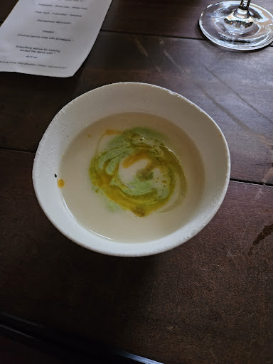 The first course, an Onion Kefir Soup with Summer Herbs, was nothing short of extraordinary. This masterpiece showcased a delicate balance of mild acidity and umami, elevated by the freshness of carefully selected herbs. The unexpected use of kefir created a velvety texture that caressed the palate. Each spoonful revealed a harmonious interplay of fat, acid, and salt, while celebrating the essence of herbs and the art of lactofermentation. The soup's density was remarkable, with the kefir providing a smooth, non-yogurt-like consistency that glided effortlessly. The scallions and herbs danced on the tongue, adding layers of complexity to this outstanding opener.