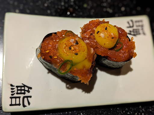 Read moreI was really hoping to give this place 5 * but unfortunately disappointed to a considerable degree with not being served hardly any food. Sat at the bar expecting to enjoy the floating boat service but unfortunately there was nothing but kimchi and seaweed salad when we arrived. The single sushi chef was prioritizing menu orders (can do the rotating selection or order what you want) so there was nothing else on offer / the other people closer to where the selection was put in rotation snapped up everything. As the others left and I expected some more to come in rotation, the single chef popped out from the bar and grabbed a beer and didnât come back. No opportunity to request anything further. I left having eaten 1/2 a roll, hungry and very disappointed. The meager bits I did have were really good, otherwise would say 1 or 2 stars. Very sad to leave what should be a lovely sushi spot very hungry. If you go, I guess just order off the menu. Or find another spot I am...